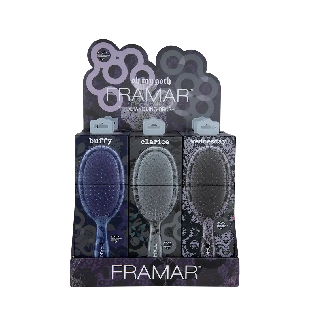 Et sæt med 9 stk. detangle børster inkl. stativ i limited edition motiv. Detangler børste som nemt reder håret ud. Fungerer godt i både vådt og tørt hår. Passer til alle hårtyper, også på extensions og parykker.