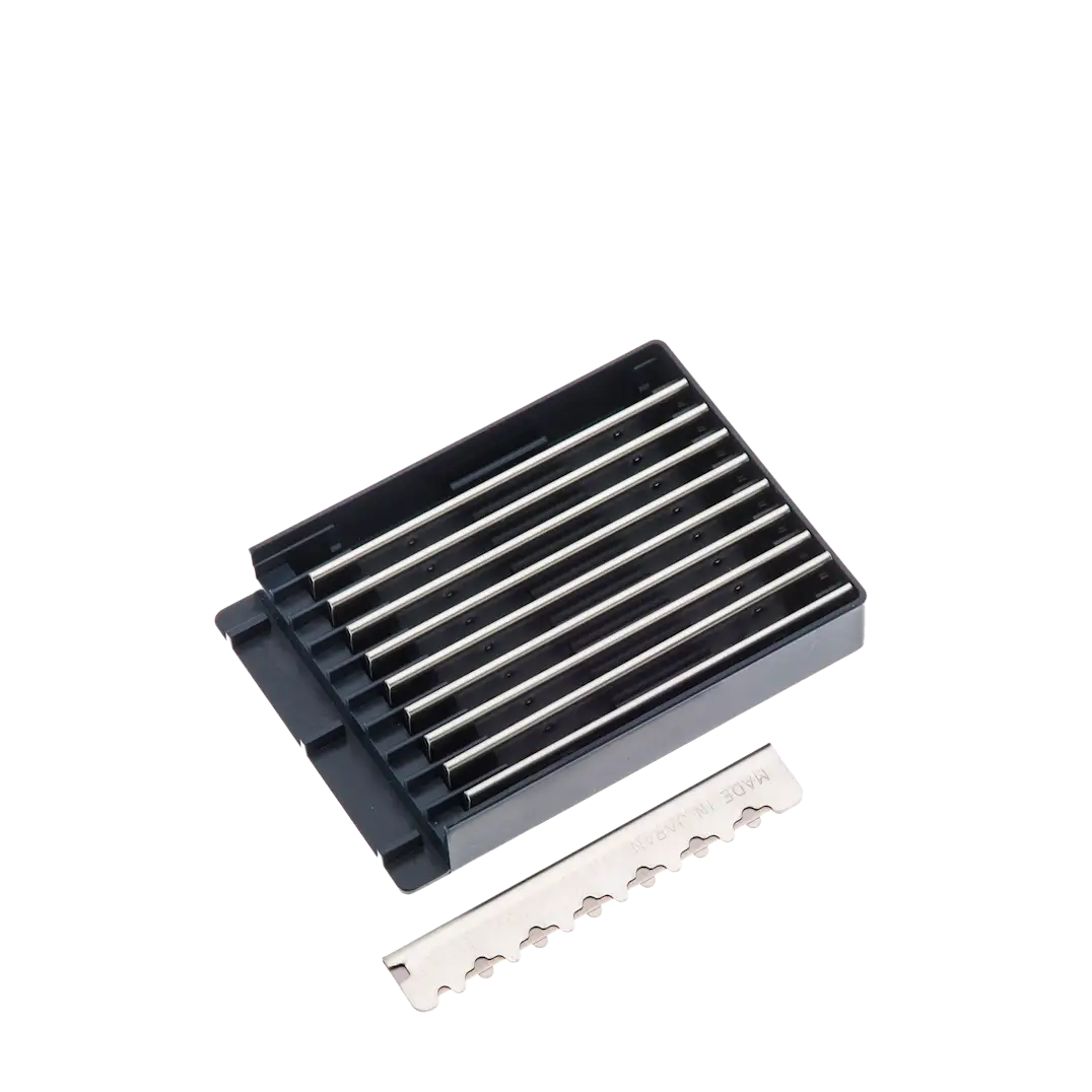 Med dette 2-i-1 sikkerhedsblad får du dobbelt så lang levetid sammenlignet med almindelige barberblade. Når den ene side er blevet sløv, kan du skubbe skraberen ind i sikkerhedshylstret ved hjælp af bladkassetten for at få frem en ny, skarp side. Standardstørrelse, der passer til de fleste mærker af barberhøvle.