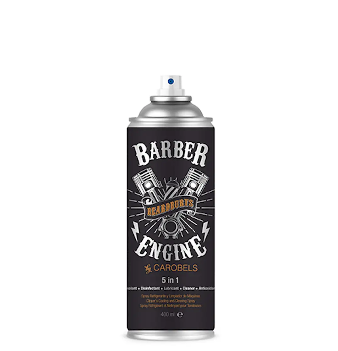 Beardburys rengjøringssray for klippemaskiner som både kjøler, desinfiserer, smører/oljer, renser og har antirustbeskytter.