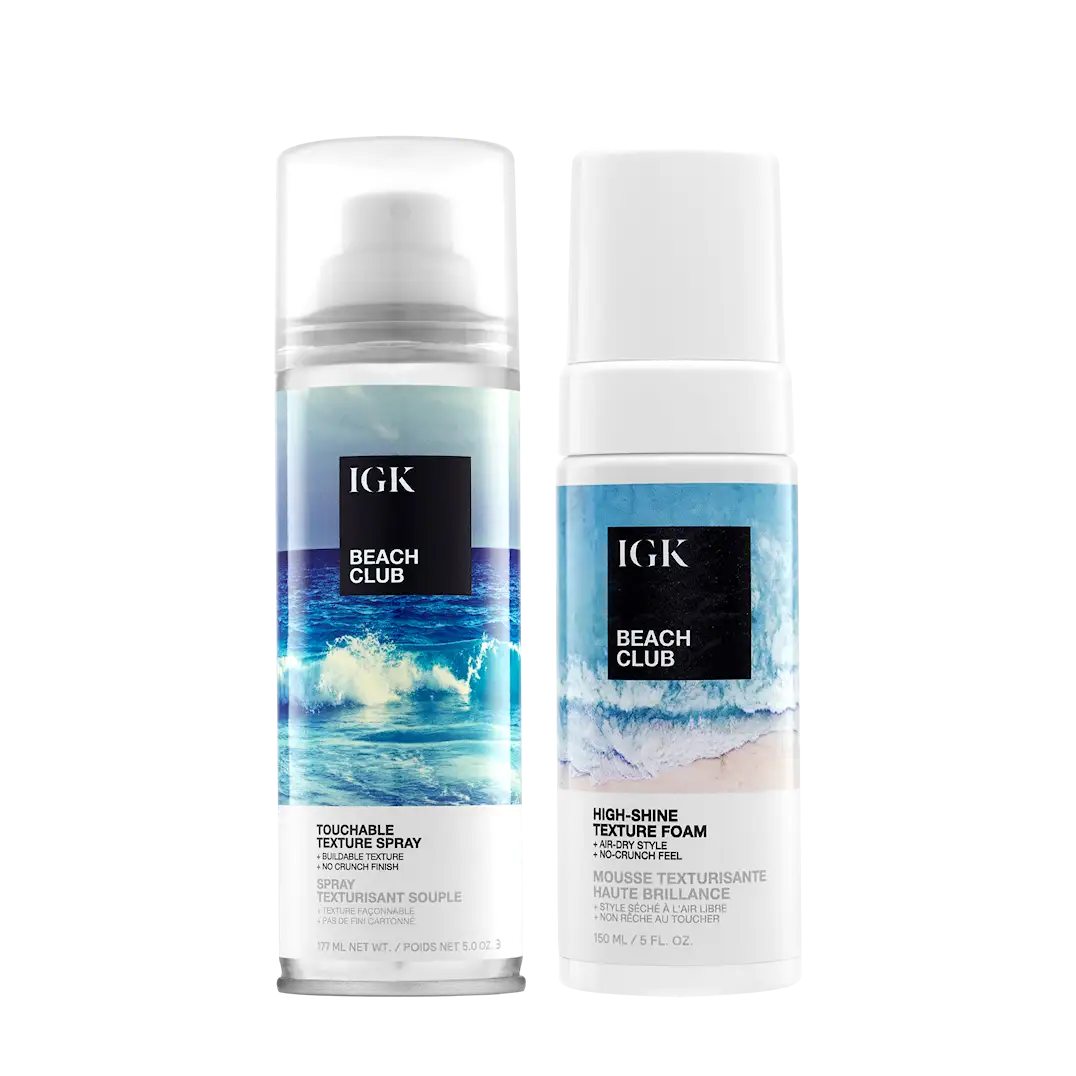 To bestselgere – én komplett beach look. IGK Beach Club Texture Spray gir lett, luftig tekstur, mens High Shine Texture Foam tilfører glans og definisjon uten å tynge håret. Perfekt sammen for en effortless, profesjonell finish. Nå 25% rabatt!
