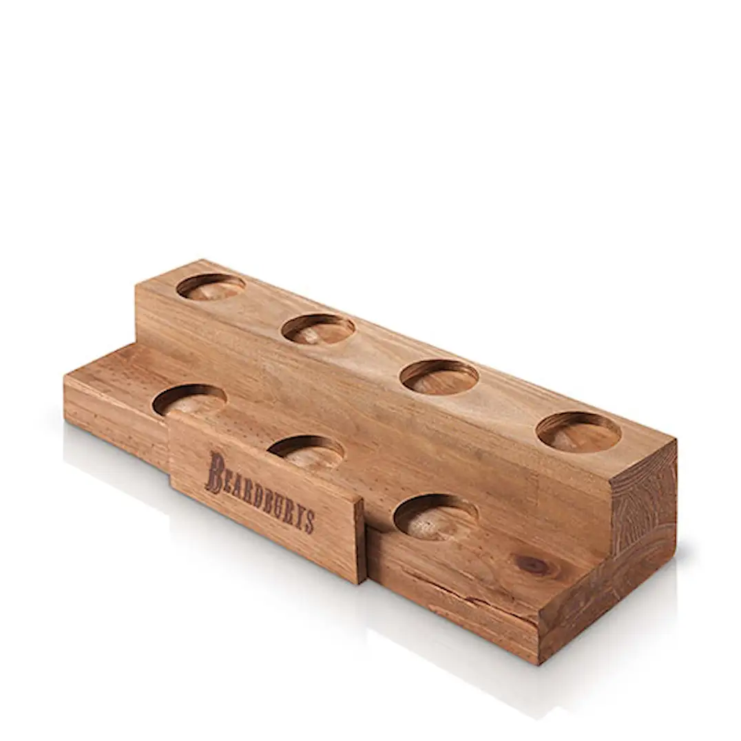 Produkt display til 7 produkter fra Beardburys. Lagd av tre.