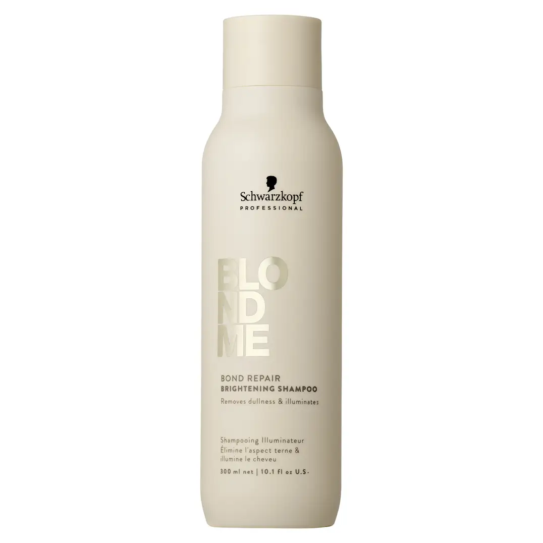 Bond Repair Brightening Shampoo er en shampoo for blondt og lysnet hår som gir en klar, ren blond farge. Den renser og gir synlig klarere blondt hår ved å fjerne oppbygginger, urenheter og miljøforurensninger. BLONDME Bond Repair Brightening Shampoo med BOND REPAIR TEKNOLOGI hjelper til med å bygge opp indre bond, og reparerer skade tilsvarende to bleke-behandlinger etter kun én gangs bruk. Den lette og fuktighetsgivende sammensetningen er beriket med mandelolje og hvit te og etterlater håret smidig med en sunn, glansfull finish.