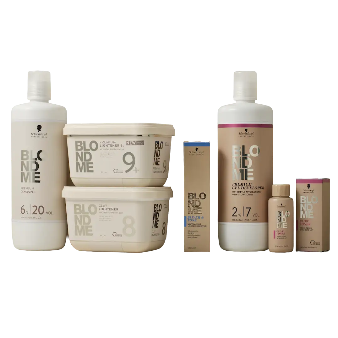 Kom i gang med BlondMe: Kjøp ett av hvert produkt og få 40 % rabatt, samt fargekart, teknisk manual og 3 måleskjeer til bleking.
