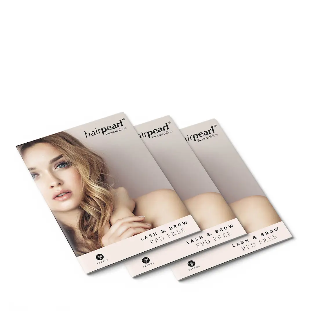 Brosjyre som inneholder oversikt over alle produkter i Hairpearl.