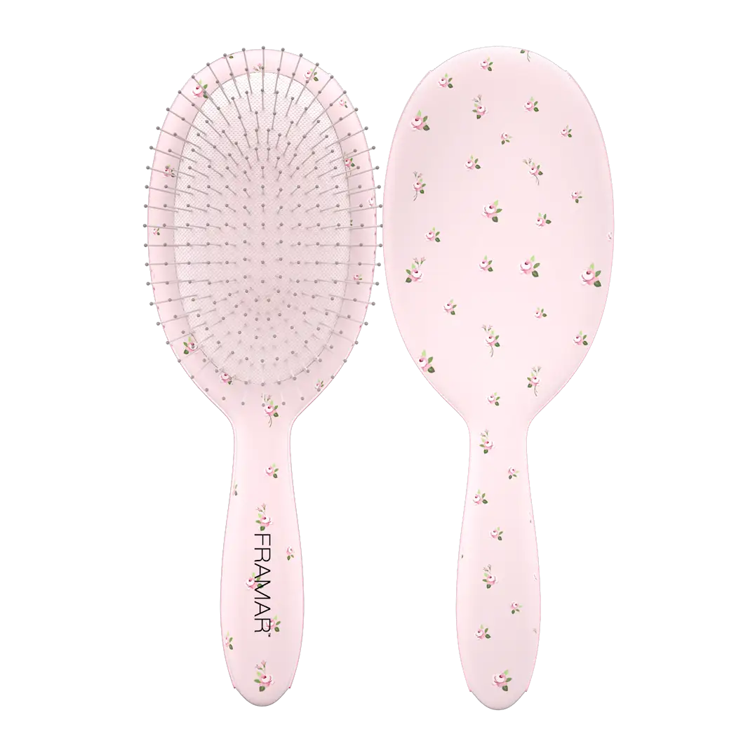 Detangler-børste med delikat blomstermønster og ekte cottagecore-sjarm, inspirert av rolige morgener, åpne vinduer og engelsk landsjarm. Løsner floker enkelt og skånsomt, både i vått og tørt hår, og passer alle hårtyper.