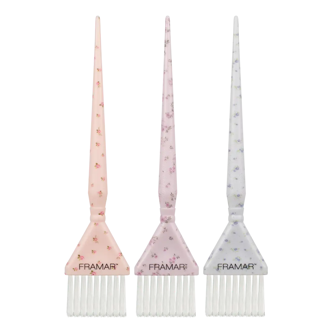 Sett med 3 fargepensler i rosa, lilla og blått blomstermønster. Perfekte til balayage, root melt og frihåndsteknikker – gir jevn påføring og en myk, presis finish.
