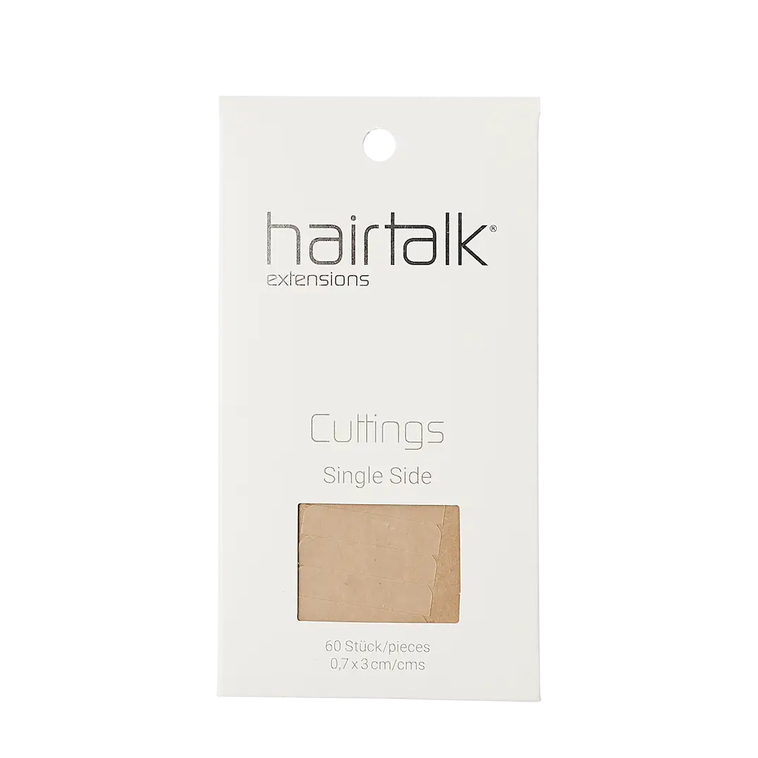 Nøkkelen til gjenpåføring av Hairtalk extensions er teipen. Hver pakke inneholder 60 teipfliker. Hairtalk Cuttings har avrundede kanter og er spesielt utviklet for å passe hver extensionsmodell.