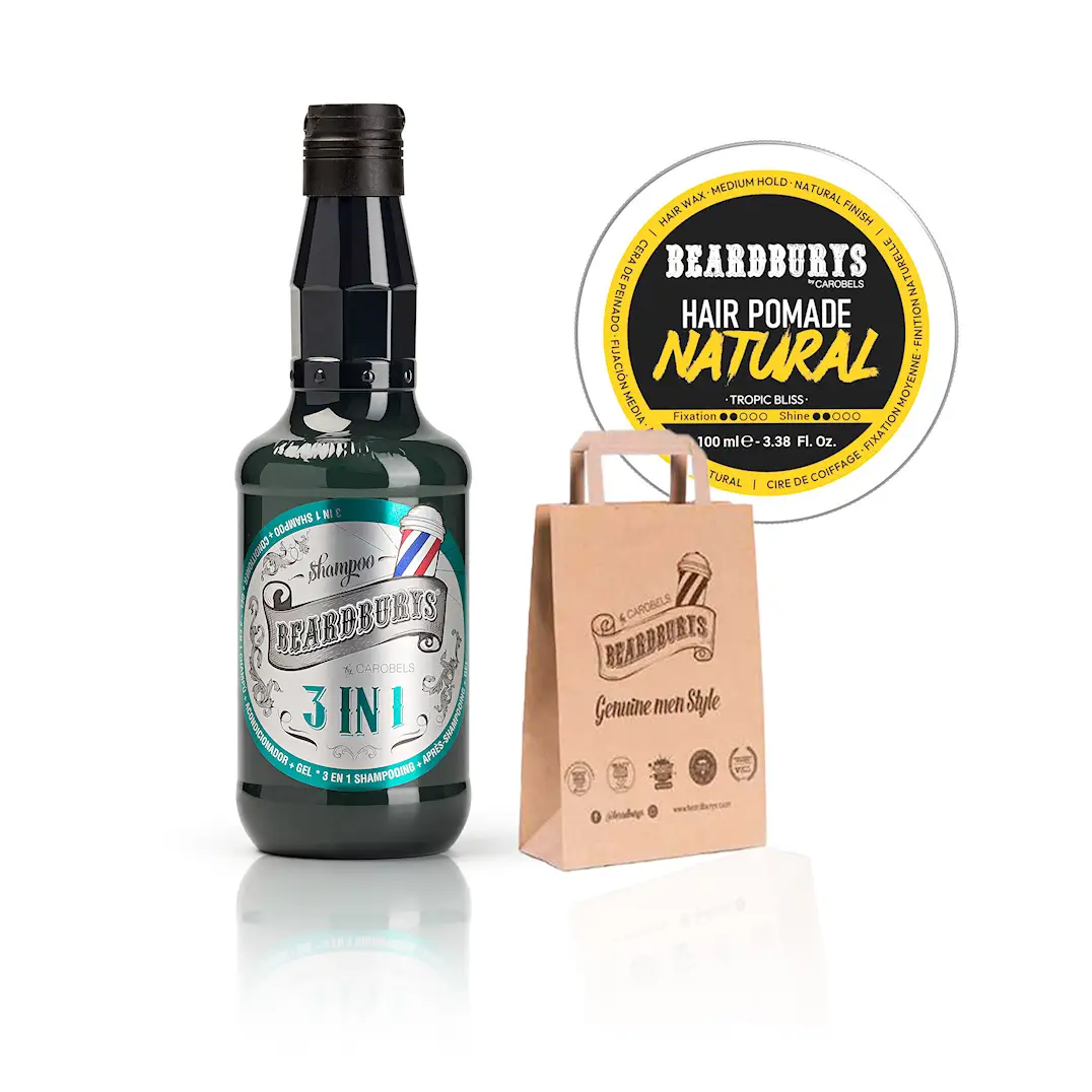 En smart pakke for hverdagsbruk – med hele 30 % rabatt! Inneholder en praktisk 3-i-1-løsning for dusj og hårpleie, samt en naturlig pomade som gir lett til medium hold med naturlig finish. Nå med 30% rabatt – papirpose inkludert for videresalg eller gavep