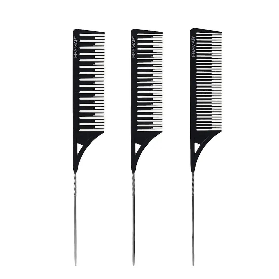 Hver utrolig lette kam har en 5-tommers pintail i rustfritt stål for enkel inndeling og seksjonering.