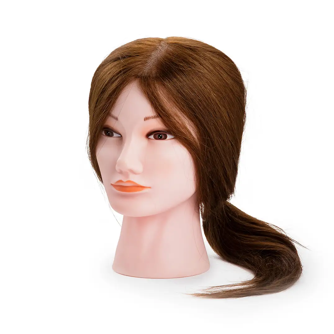 Mannequinhode med syntetisk hår, hårlengde 35-40 cm. Dette mannequinhodet er ideelt for klipping og styling, men bør ikke farges, blekes, permanentes eller styles med varmeverktøy.