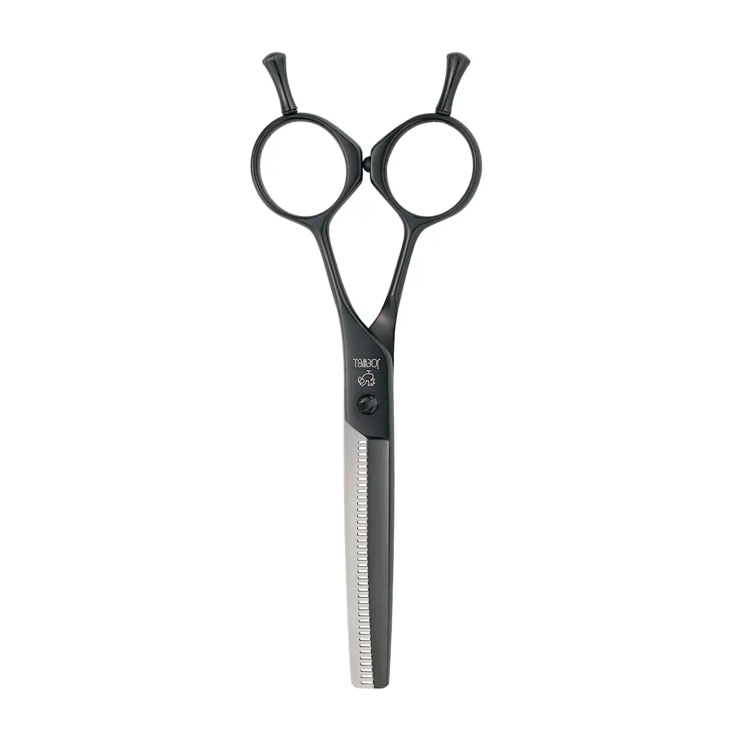 Joewells bestselgende tynningssaks er nå tilgjengelig i en stilren matt svart finish! Med 40 presisjonsslipte tenner, er disse saksene laget av førsteklasses japansk rustfritt stål og er nøye håndlaget for enestående ytelse.