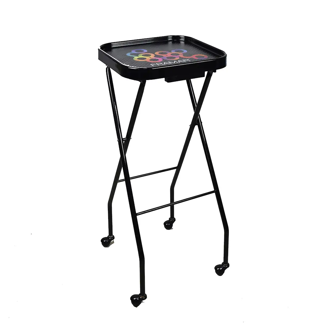 Mobilitet, funksjonalitet og stil i ett! Gjør din hverdag på salongen enklere med Framar Folding Trolley – det ultimate sammenleggbare trillebordet for profesjonelle frisører og stylister.