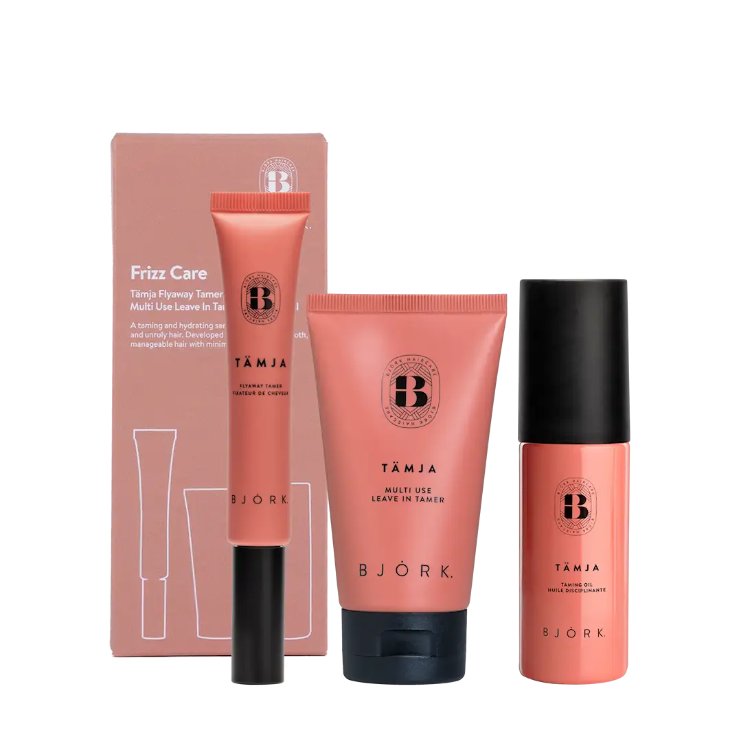 Tamja Flyaway Tamer: Tämja hjelper deg å få kontroll over flyaways samtidig som det gir håret næring og styrke uten at det blir stivt eller klissete. Med en unik sammensetning av kokosolje, sheasmør og aminosyrer som sammen tilfører fukt og glans til håret.