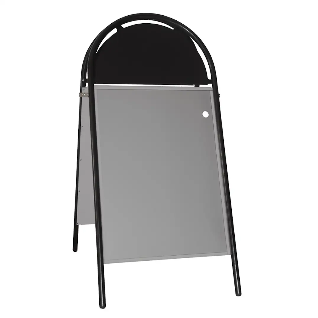 Svart gatebukk med plass til 50x70 plakater. Buet topp uten logo.