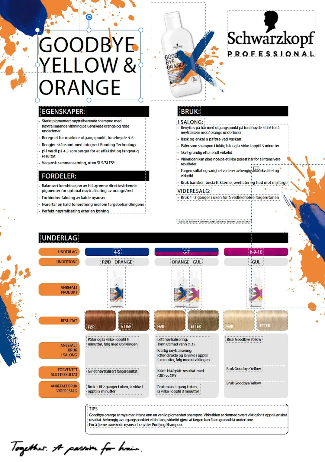 GoodBye Yellow Og Orange Pigmenterte Shampoo. Brukerveiledning på når du skal bruke de forskjellige shampooene.