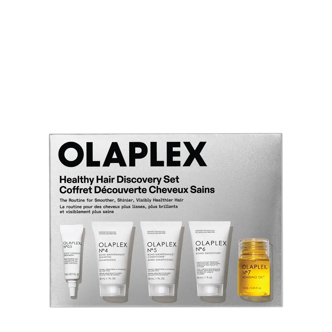 Olaplex Healthy Hair Discovery Set gir deg fem ikoniske bestselgere i praktiske størrelser – perfekt for å teste, reise eller alltid ha favorittene tilgjengelig.
