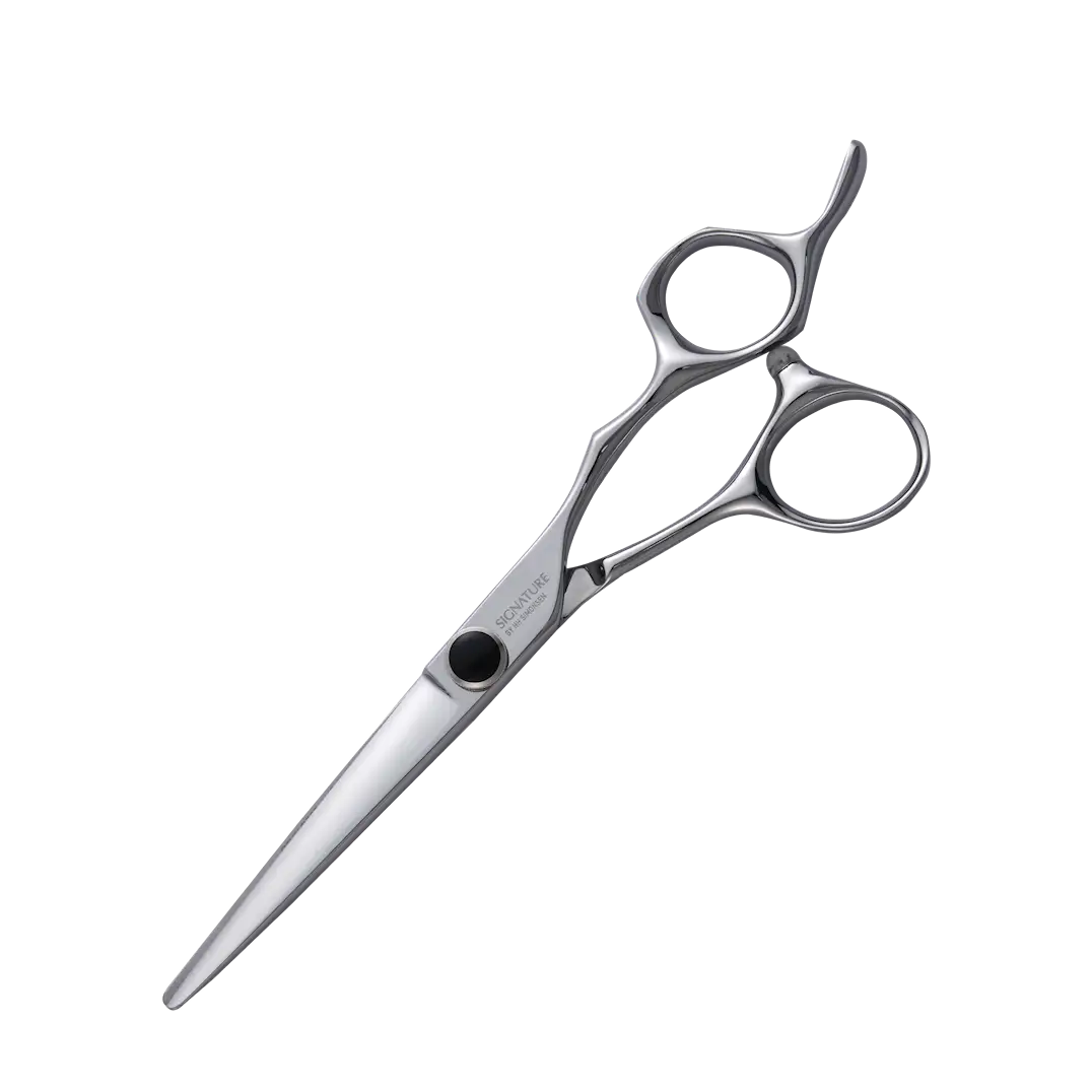 Senterskrue med spesialutviklede silikonskiver, som gjør at saksen åpnes og lukkes helt jevnt og friksjonsfritt.