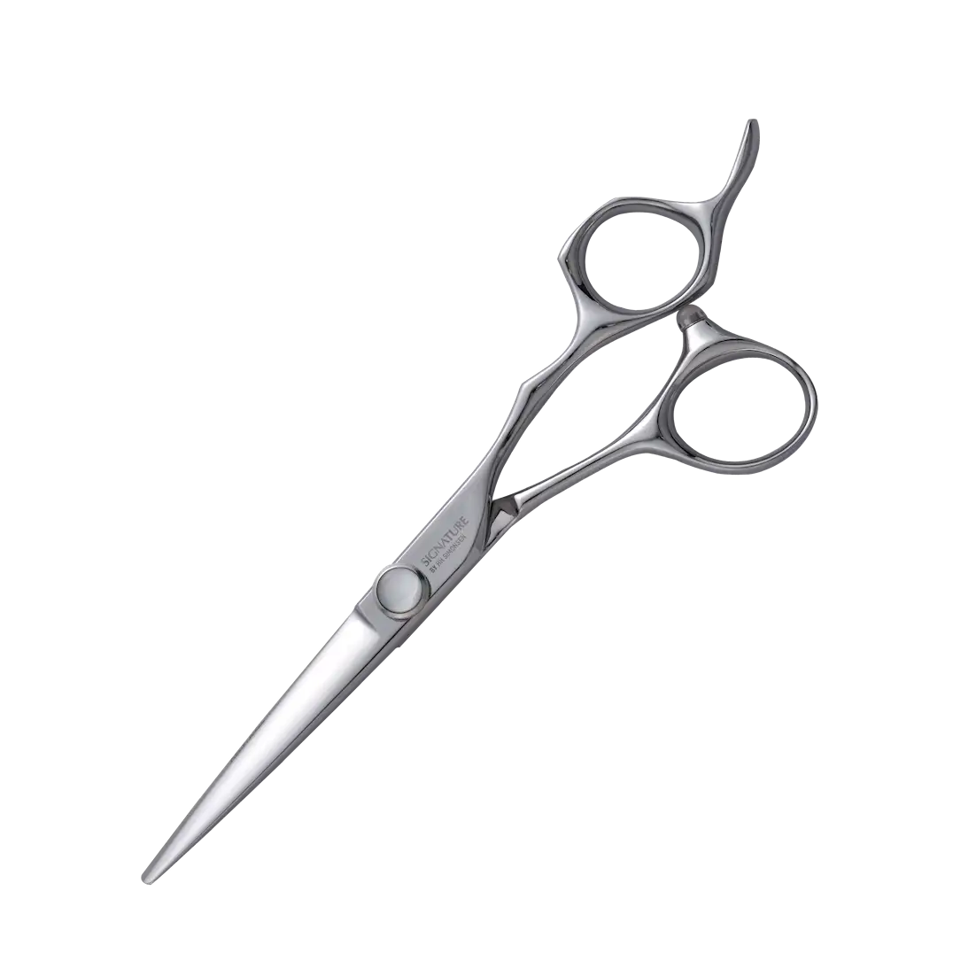 Senterskrue med spesialutviklede silikonskiver, som gjør at saksen åpnes og lukkes helt jevnt og friksjonsfritt.