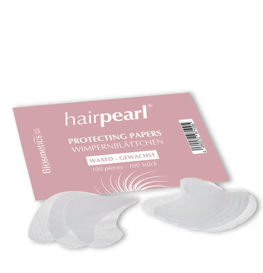 Det spesielle voksede belegget til Hairpearl beskyttelsespapir, er nødvendig for å forhindre at klientene under øyelokkene får uønskede flekker. Forhåndsformet, lett å håndtere og sjenerøst dimensjonert for maksimal dekning og beskyttelse på grunn av dere