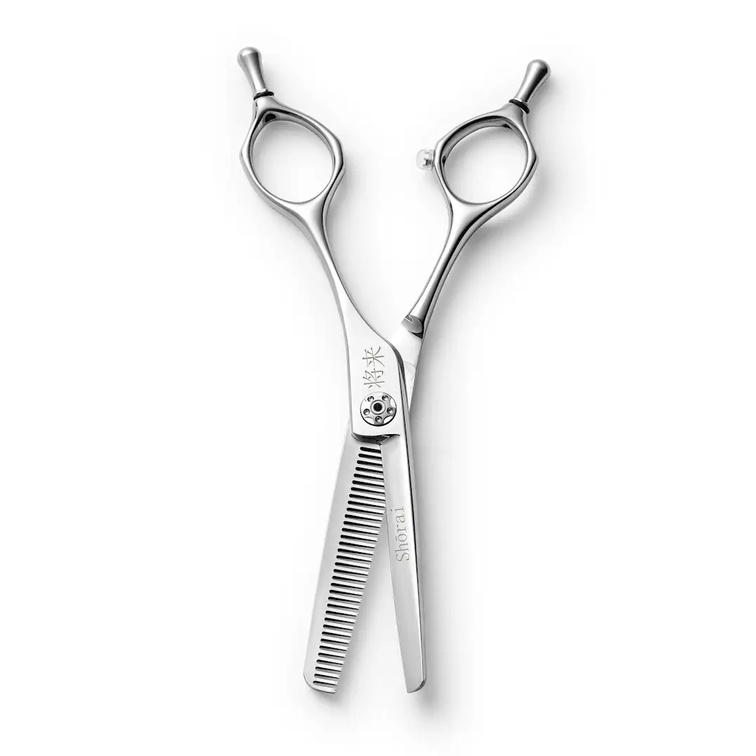 Effileringssaks fra Shōrai, laget av japansk stål. Saksen er prisvennlig og holder høy kvalitet.