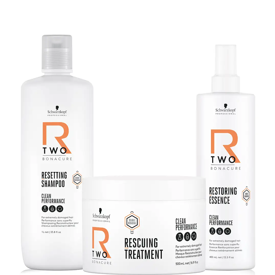 BC Bonacure R-Two er en vegansk pleieserie for meget kjemisk skadet hår som reparerer og gjenoppbygger hårets indre og ytre struktur. Double Bonding Technology gjenoppretter ødelagte bindinger i håret og sørger for at håret blir sterkere, samtidig som håroverflaten blir jevnere og mer håndterbar.