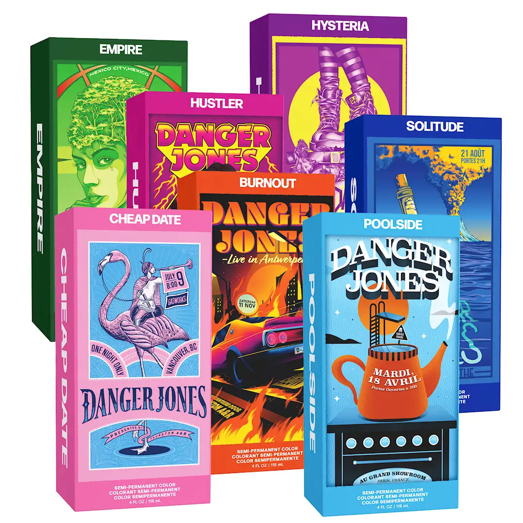 Danger Jones er et dynamisk merke som feirer eventyr og risiko. Deres semi-permanente farger ble lansert januar 2024 og har tatt frisører over hele verden med storm!