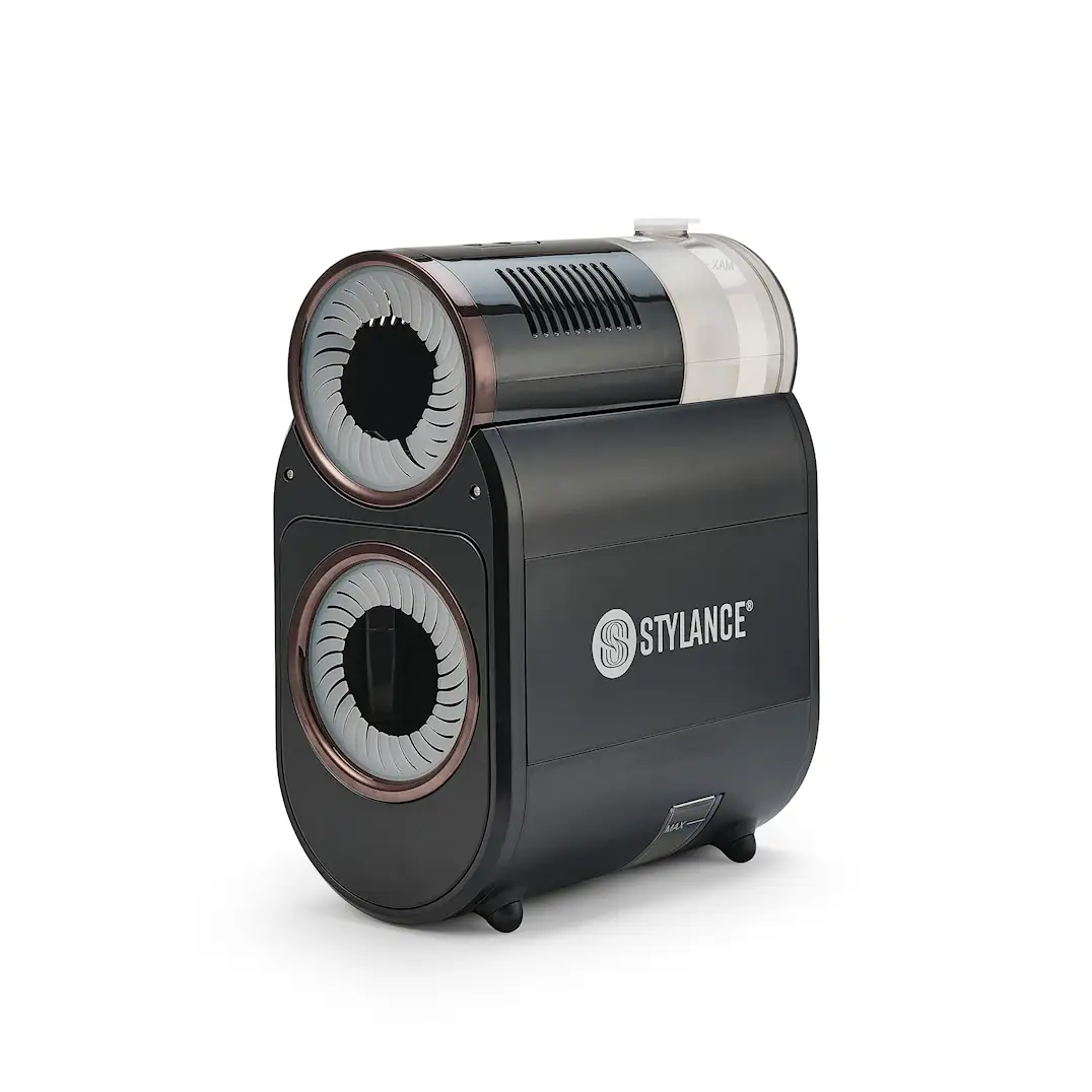Rengjøreren har to forskjellige funksjoner. Den nedre åpningen fjerner håret, og den øvre åpningen utfører en hygienisk desinfisering med damp. Alt for å forbedre hygienen og renheten i salongen.