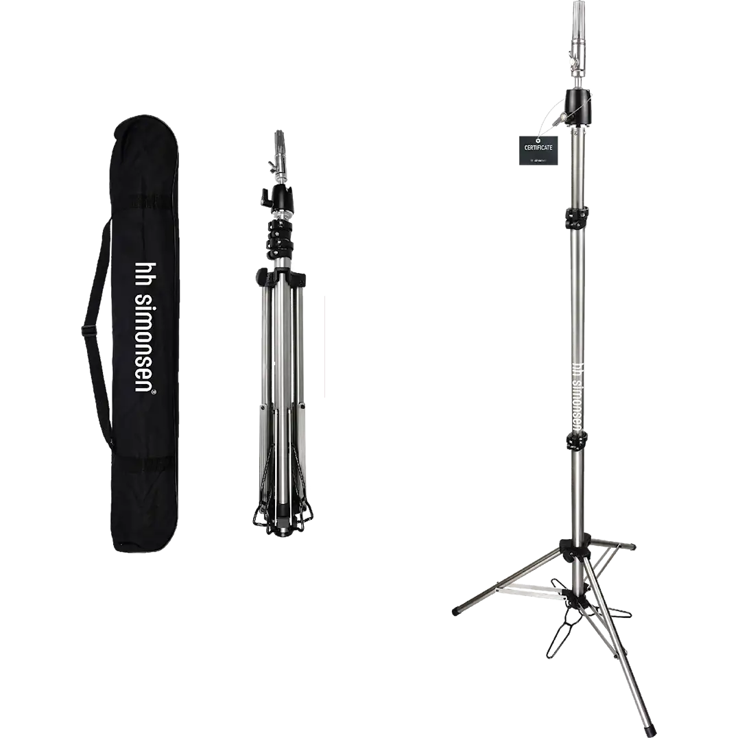 Vårt stativ kan enkelt justeres til alle høyder med det unike høydejusteringssystemet. Den har ekstra fotpedaler som sikrer at den ikke velter under bruk. Treningshodet kan enkelt roteres 360 grader og legges ned i horisontal posisjon. Stativet leveres i en praktisk skulderveske.