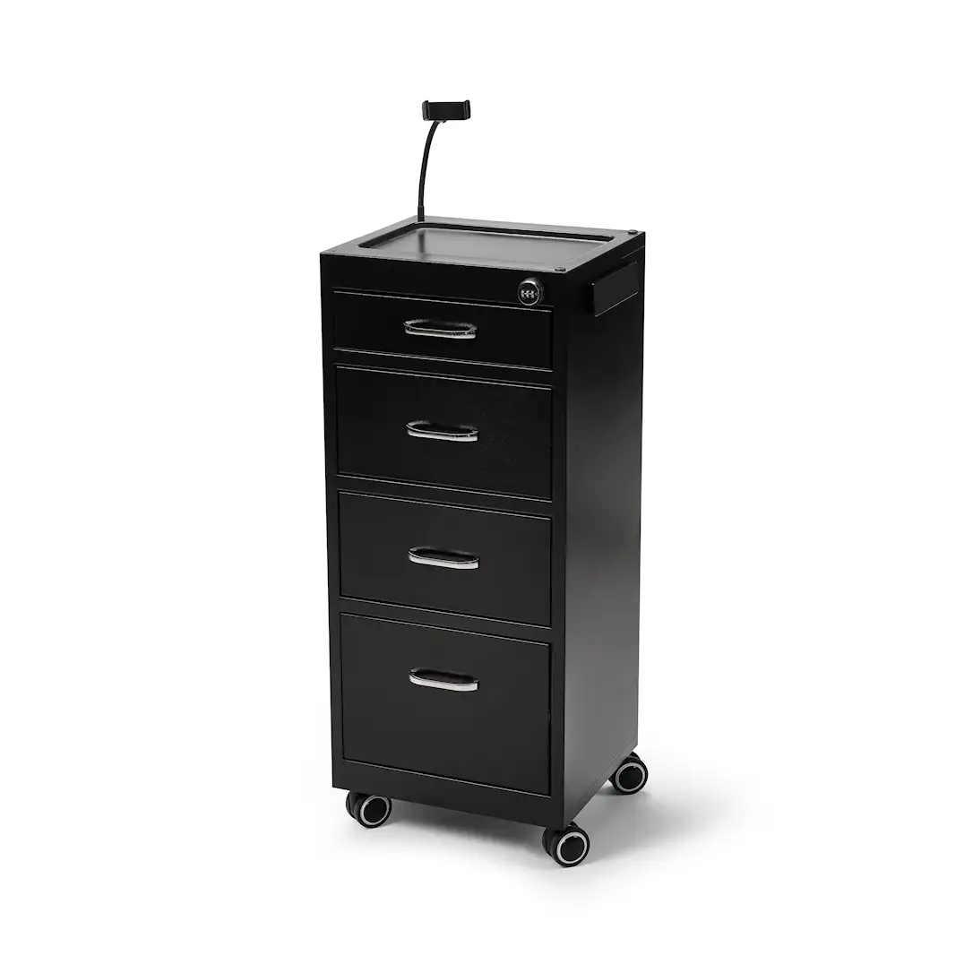 Solid trillebord i sort utførelse for oppbevaring av alt verktøy og utstyr mens du jobber. Metallet er magnetisk og kan brukes til å feste magnetiske verktøy, flasker osv.