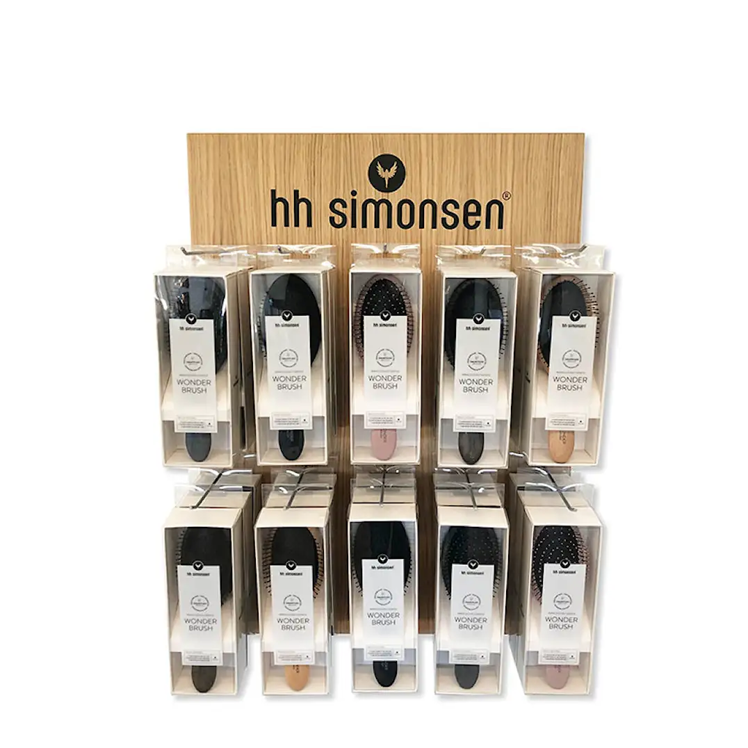 Børstestativ til vegg med plass til 30 stk børster. Målene på stativet: B54cm, H73 cm, D25cm.