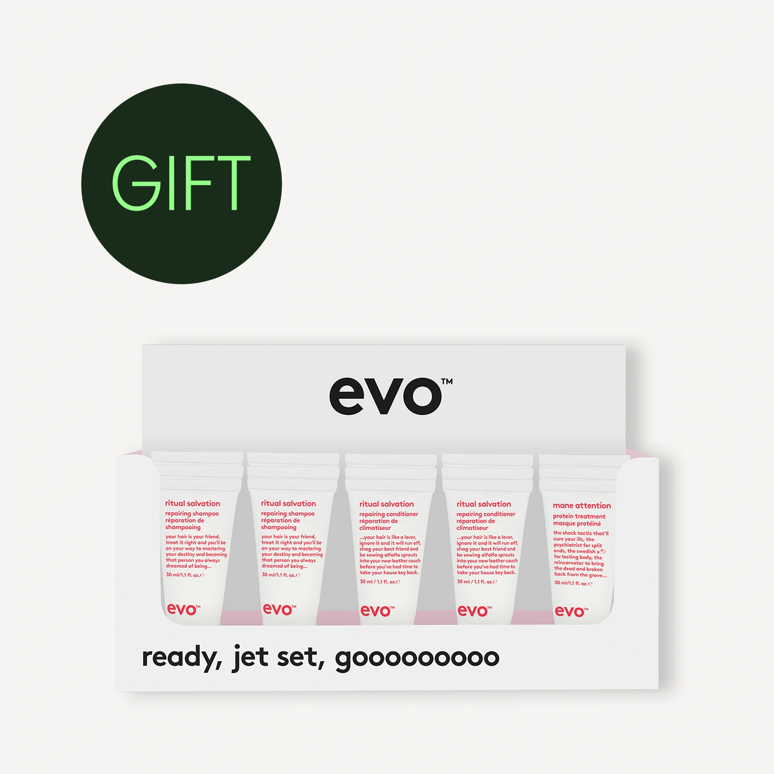 Köp 10 stycken utvalda stylingprodukter från evo i ordinarie storlek, få 20 st olika travel size att ge ut till kunder på köpet! Låt dina kunder hitta sin nya favorit.