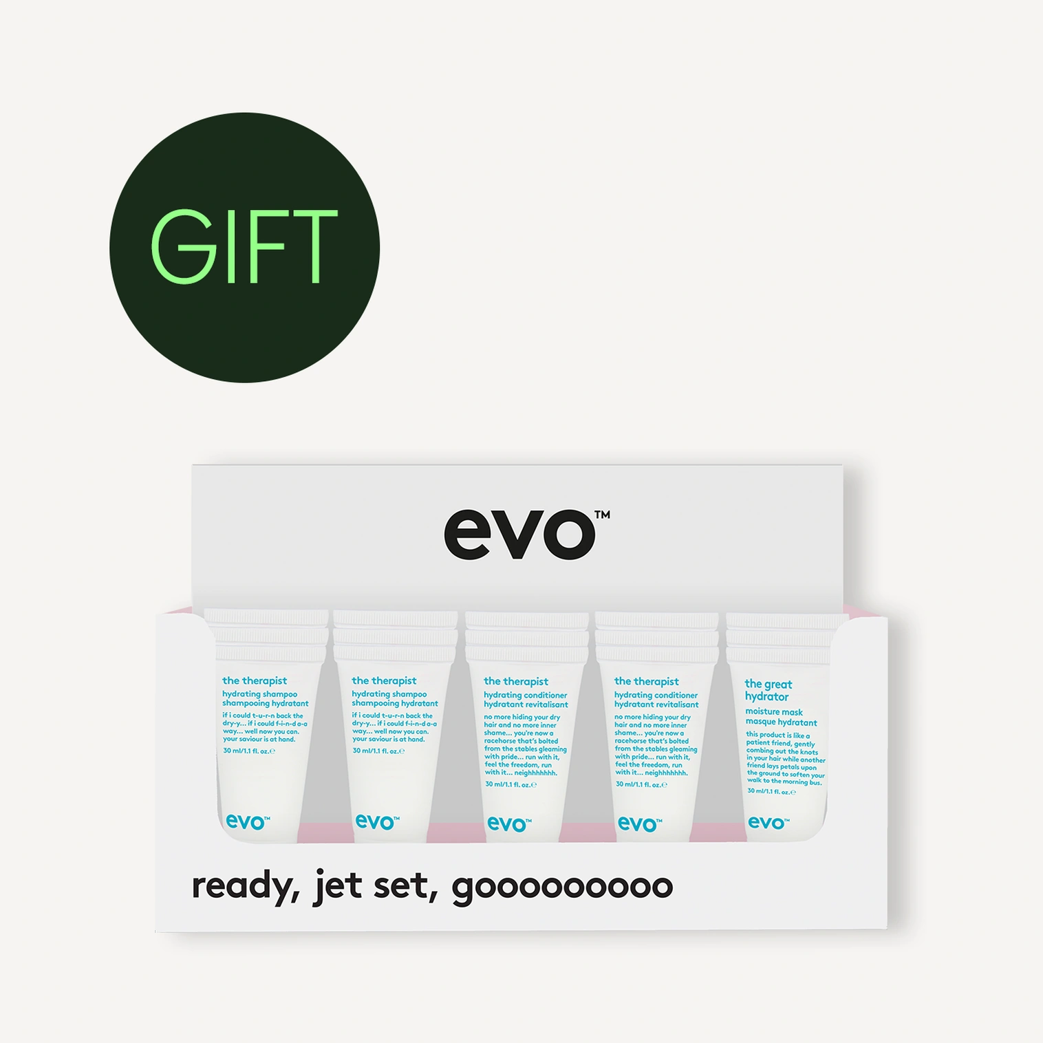 Köp 15 st evo the therapist & the great hydrator (blanda fritt), få display med 15 travel size på köpet.