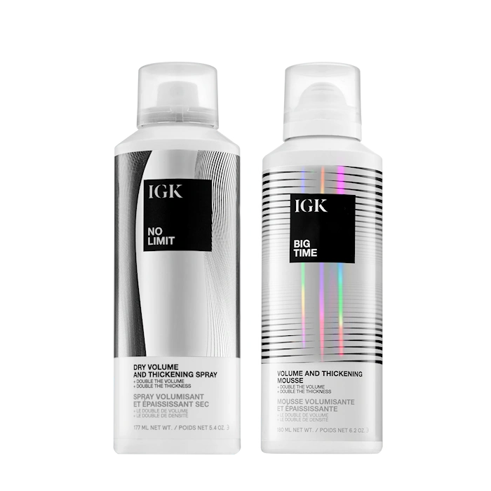 Maxa fyllighet och lyft med IGK No Limit och Big Time – två volymfavoriter för fylligt hår med minimal effort.