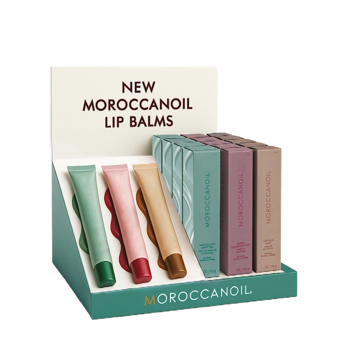 Upptäck Moroccanoils nya läppbalsam – ett högpresterande balm som ger direkt och långvarig fukt, utan kladd. Berikat med arganolja, argansmör, peptider och hyaluronsyra som gör läpparna mjuka, släta och naturligt glansiga.
