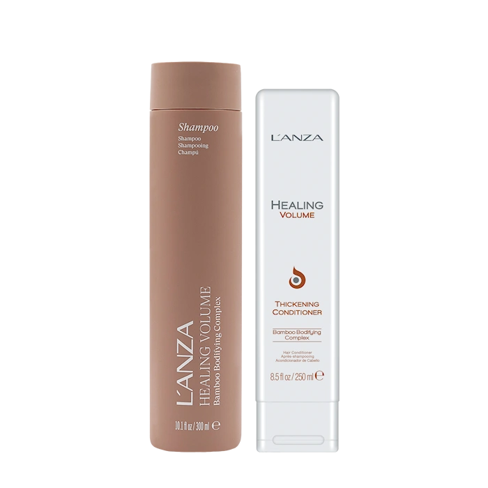 Schampo och balsam som skonsamt rengör ditt hår, resultatet blir fylligt med volym och kalufsen hälsosamt mår.