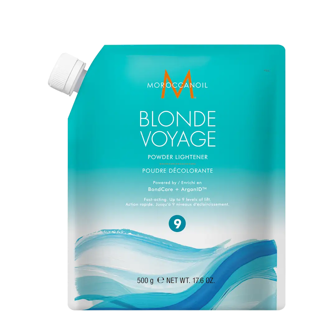 Moroccanoil Blonde Voyage Powder Lightener lyfter upp till 9 nivåer av färg. Den högpresterande, mångsidiga formulan lägger sig jämnt och håller sig på plats vilket möjliggör precisionsapplicering för alla frihandstekniker. Den innehåller Moroccanoils BondCare + ArganID System för att skydda, vårda, stärka och förstärka bindningar för att hjälpa till att minska skador och brytningar under ljusningsprocessen.