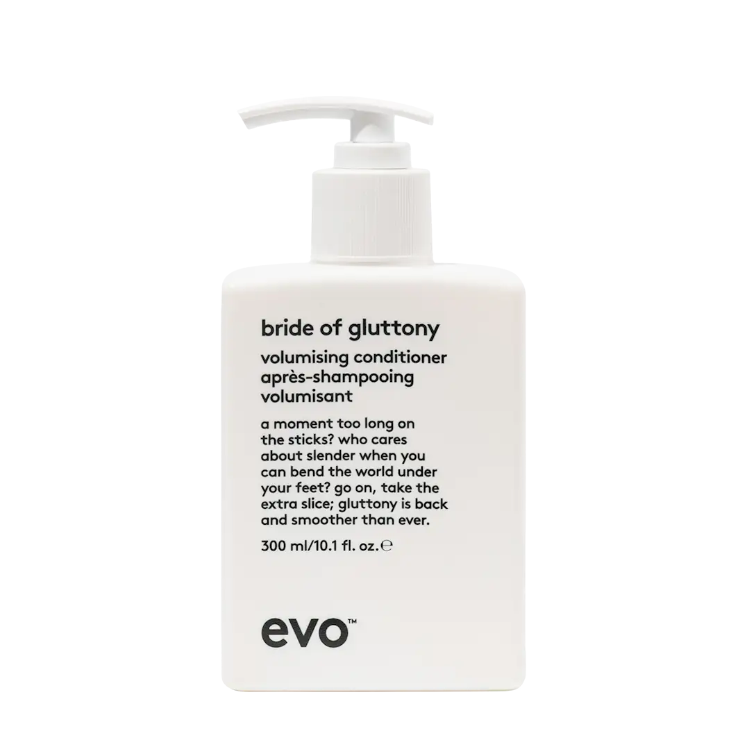 Bride of Gluttony Volumizing Conditioner bygger volym och fyllighet i finare hårtyper. Detta volymgivande balsam innehåller UVA/UVB-skydd, vilket hjälper till att skydda hårfärgen från att blekna och skadas av solen. Tillsatt hydrolyserat quinoa stärker håret samtidigt som det förbättrar färgens livfullhet. Bride of Gluttony stödjer styling genom att hjälpa till att uppnå extra fyllighet och volym utan att tynga ner håret. Bride of Gluttony Volumizing Conditioner är en del av Volume-familjen, designad för att ge volym och fyllighet till fint, livlöst, färgbehandlat hår.
