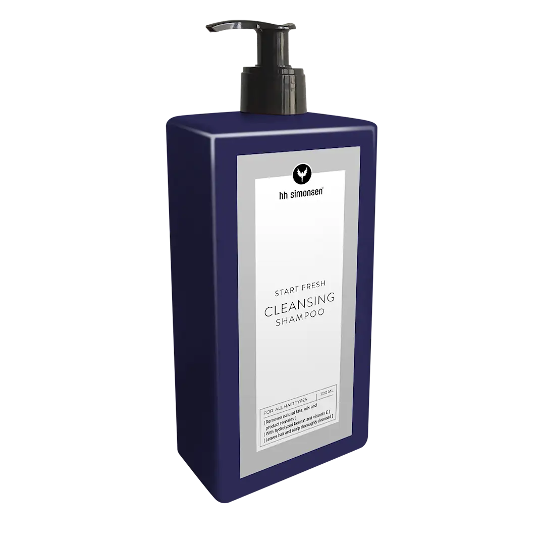 HH Simonsen Cleansing Shampoo rengör hår och hårbotten på djupet och tar bort oljor, naturliga fetter och ansamlade rester från stylingprodukter.