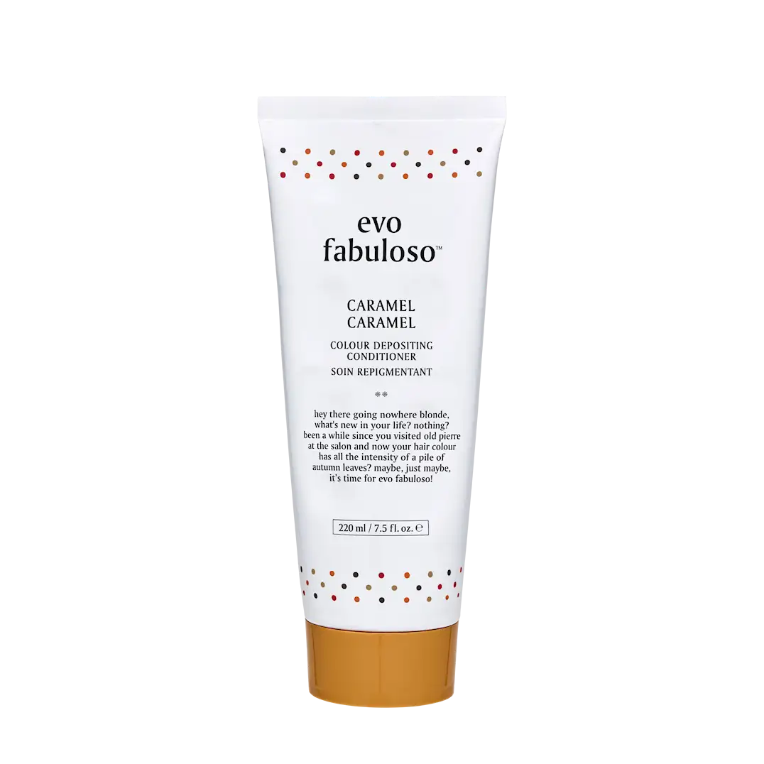 Evo Fabuloso colour boosting treatment fräschar upp, tonar, återupplivar och ger glans till färgbehandlat hår. Balsamet har reparerande och anti-statiska egenskaper för att stärka håret och minska frizz. Caramel passar bäst för trist, torrt, färgbehandlat ljusblont till mörkblont hår. Resultatet blir en varm kolaton. Använd Evo Fabuloso direkt från hyllan till duschen för att hålla färgbehandlat hår tonat, livfullt och friskt mellan salongsbesöken.