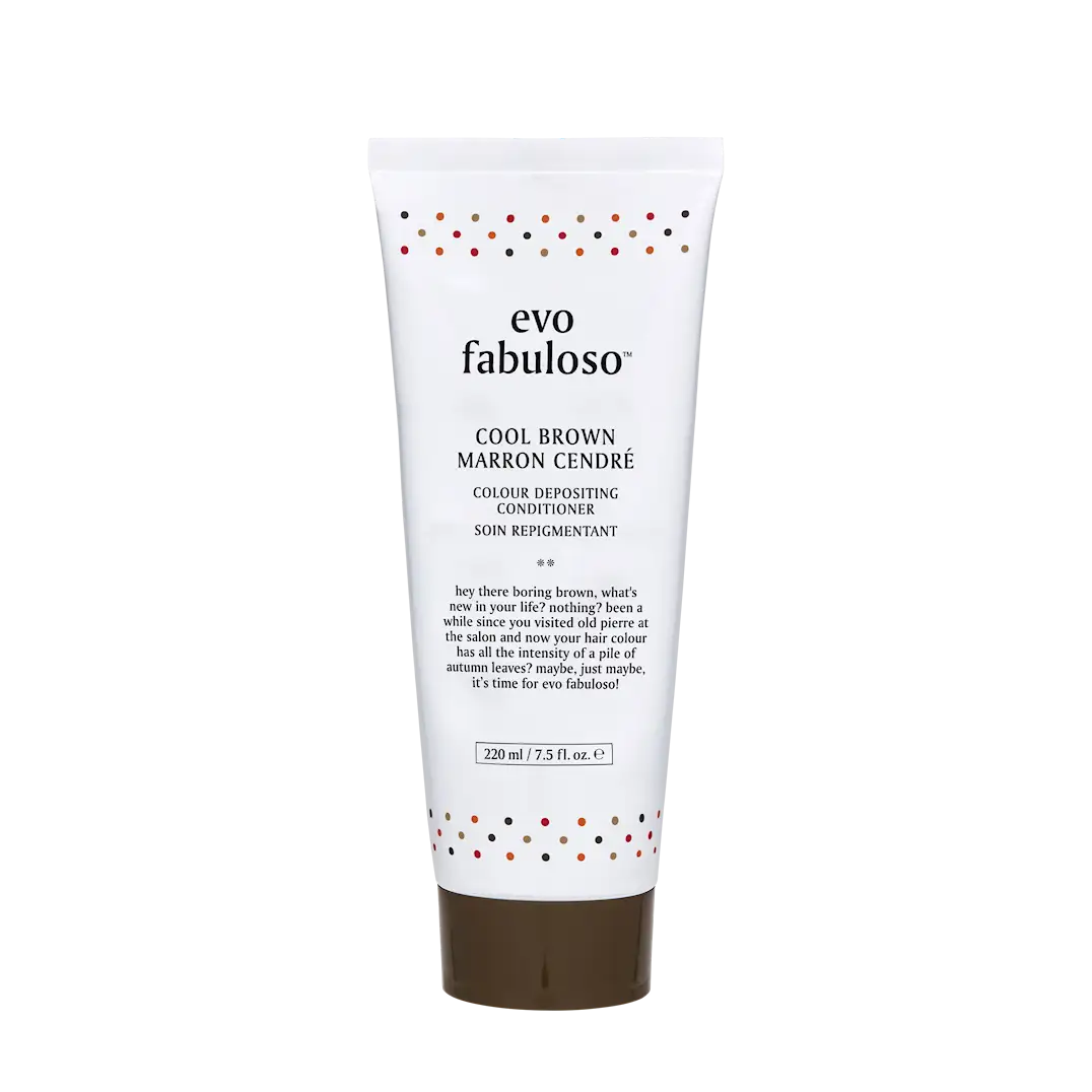 Evo Fabuloso colour boosting treatment fräschar upp, tonar, återupplivar och ger glans till färgbehandlat hår. Balsamet har reparerande och anti-statiska egenskaper för att stärka håret och minska frizz. Cool Brown passar bäst för trist, torrt, färgbehandlat ljusbrunt till mörkbrunt hår. Resultatet blir en kall brun nyans. Använd Evo Fabuloso direkt från hyllan till duschen för att hålla färgbehandlat hår tonat, livfullt och friskt mellan salongsbesöken.