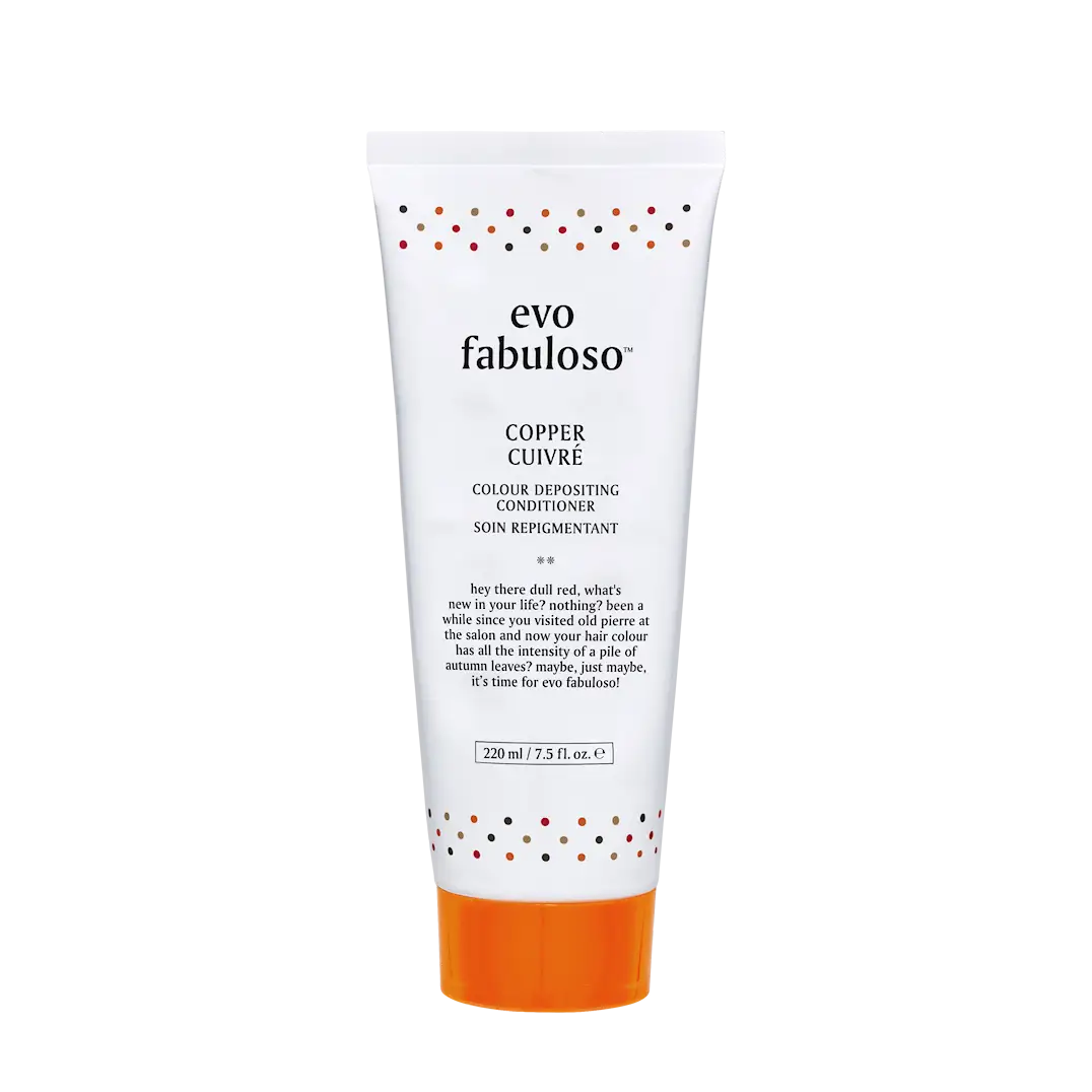 Evo Fabuloso colour boosting treatment fräschar upp, tonar, återupplivar och ger glans till färgbehandlat hår. Balsamet har reparerande och anti-statiska egenskaper för att stärka håret och minska frizz. Copper passar bäst för trist, torrt, färgbehandlat blont till medelbrunt hår med kopparton och rekommenderas till färgat hår där man önskar intensifiera den koppriga nyansen. Använd Evo Fabuloso direkt från hyllan till duschen för att hålla färgbehandlat hår tonat, livfullt och friskt mellan salongsbesöken.