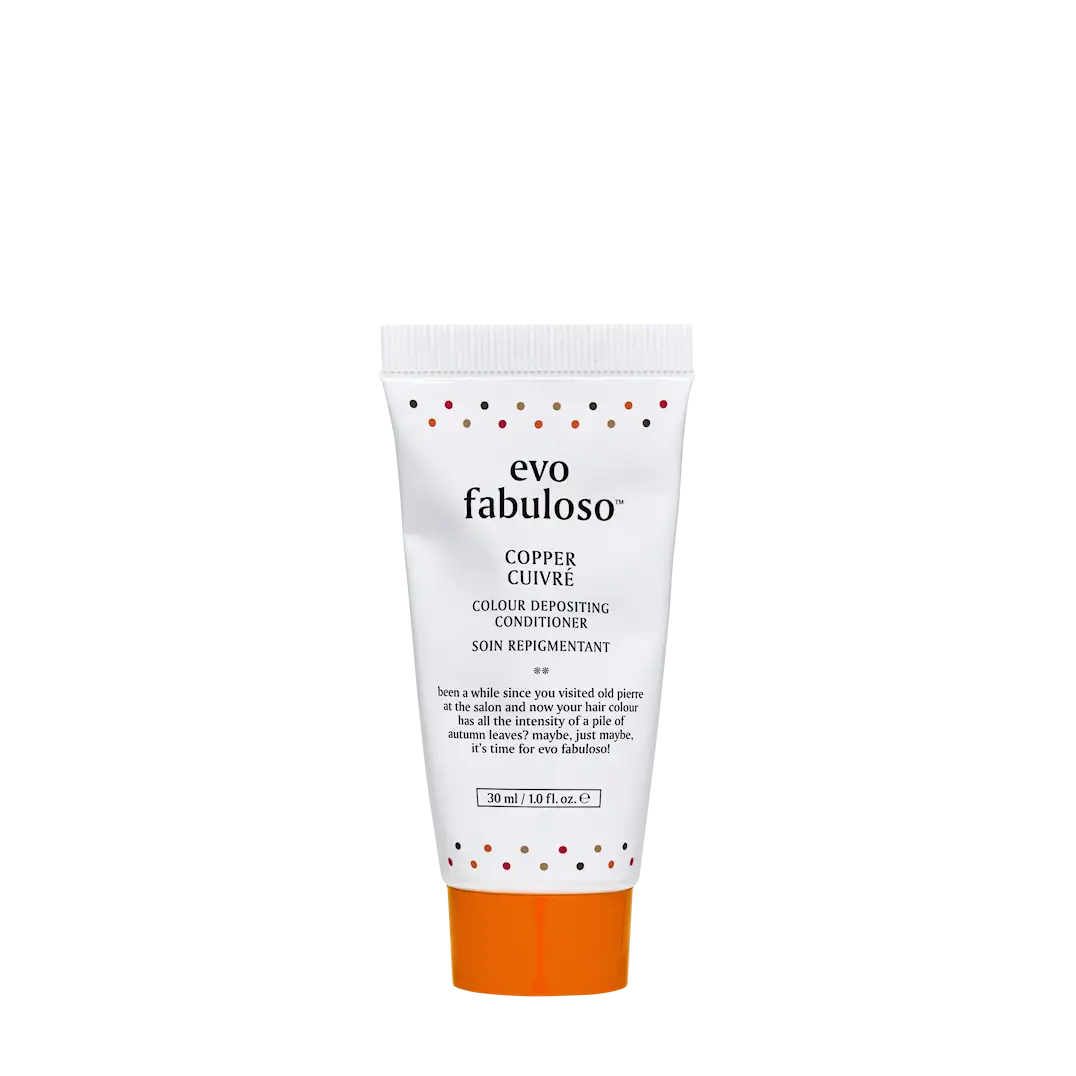Evo Fabuloso colour boosting treatment fräschar upp, tonar, återupplivar och ger glans till färgbehandlat hår. Balsamet har reparerande och anti-statiska egenskaper för att stärka håret och minska frizz. Copper passar bäst för trist, torrt, färgbehandlat blont till medelbrunt hår med kopparton och rekommenderas till färgat hår där man önskar intensifiera den koppriga nyansen. Använd Evo Fabuloso direkt från hyllan till duschen för att hålla färgbehandlat hår tonat, livfullt och friskt mellan salongsbesöken.