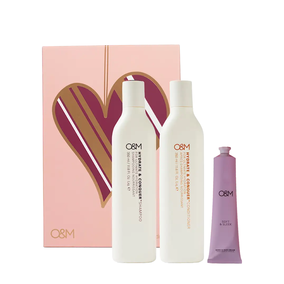 Julbox med Hydrate & Conquer Shampoo och Conditioner 350 ml och en limited edition hair and hand cream 75ml.