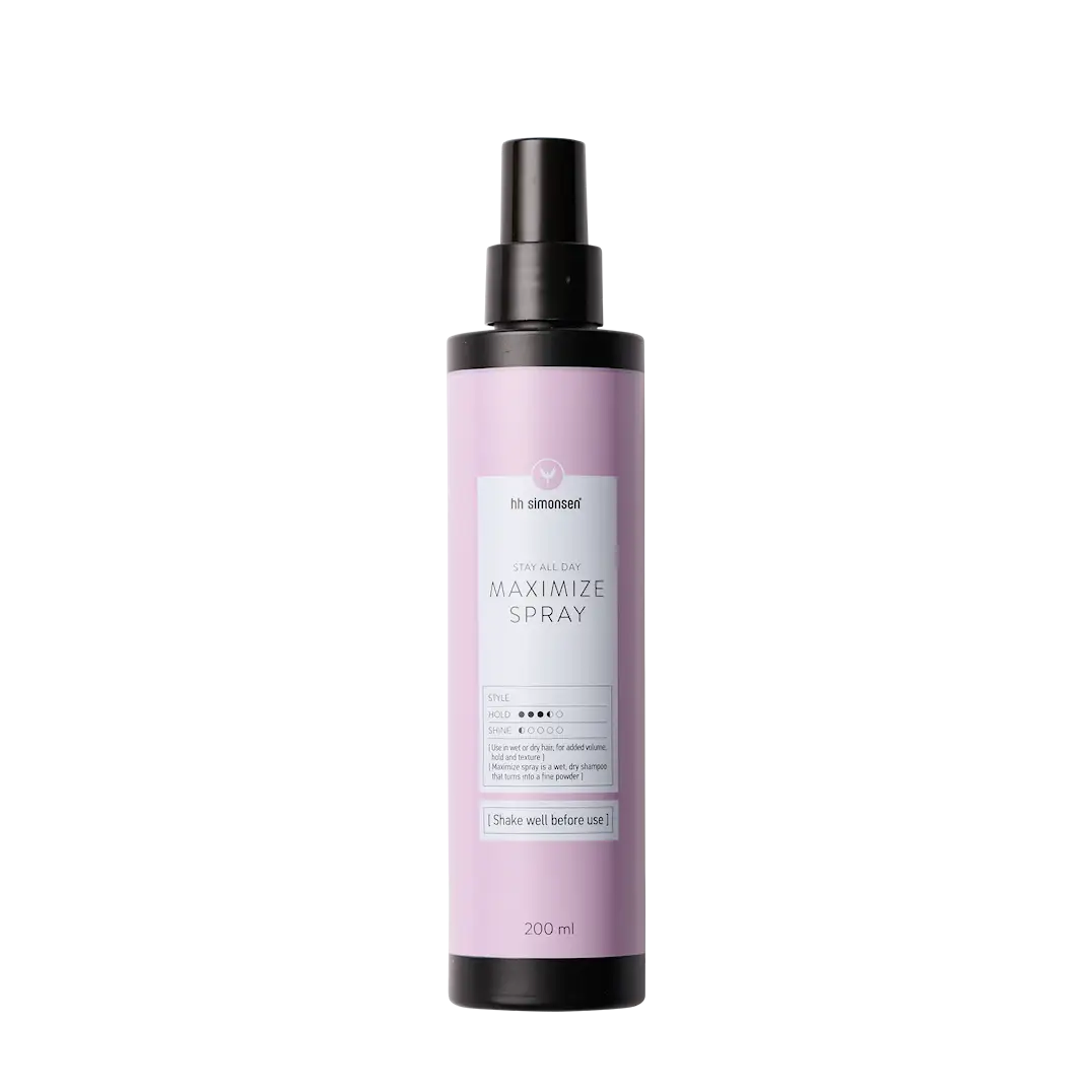 Maximize Spray är ett våt torrschampo som omvandlas till fint pulver. Den är perfekt att använda i både kort och långt hår. Kom ihåg att skaka flaskan före användning (så att kulan kan höras) för att pulvret ska fördelas i flaskan.
