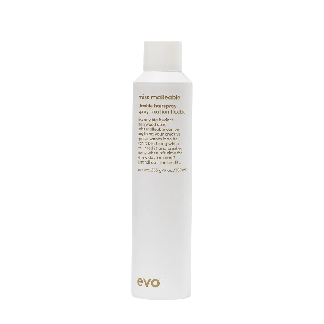 Miss Malleable är ett flexibelt hårspray designad för att skapa strukturerade frisyrer med frihet att enkelt forma håret under stylingprocessen. Hårsprayet har en fin, torr mist som torkar vid kontakt och lämnar en icke-klibbig yta, och fungerar utmärkt för att kontrollera envisa småhår och frissiga hårlinjer. Miss Malleable ingår i Style-familjen och erbjuder styling- och finishalternativ för alla hårtyper.