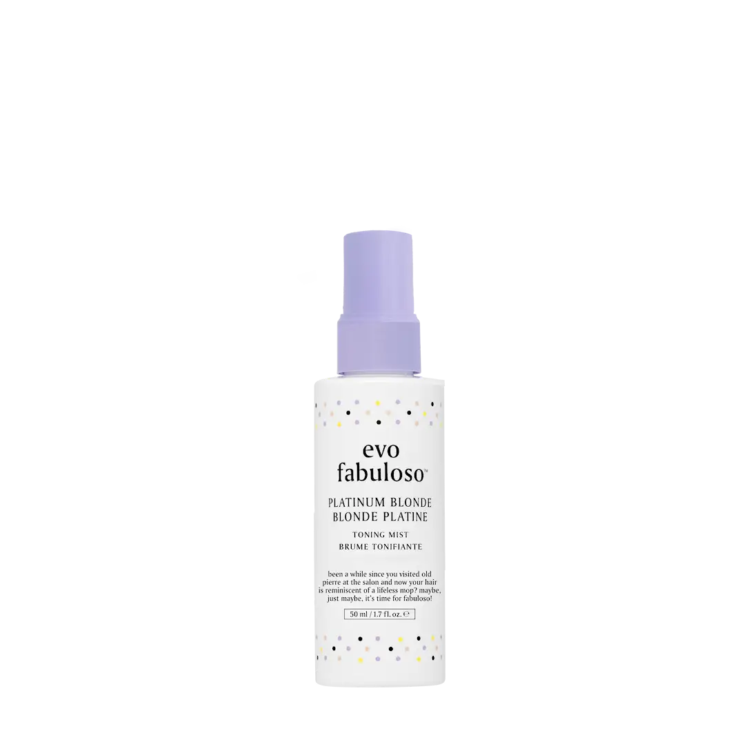 Evo Fabuloso Platinum Blonde Toning Mist är en lätt, leave-in-spray som varsamt tonar för att hålla blont hår ljust och glansigt. Misten innehåller precis rätt mängd violett pigment för att mjukt tona blont, grått eller uppljusat hår samtidigt som den reder ut, återfuktar och ger glans. Designad för att användas tillsammans med Platinum Blonde Toning Shampoo och/eller Colour Boosting Treatment. Innehåller UV och värmeskydd. Vegansk.