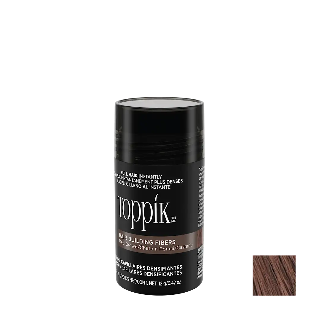 Toppik Hårfiber döljer tunnhårighet och håravfall. Organiskt keratin från naturligt ullhår fäster sig i det befintliga håret och gör att det ser mycket tjockare och tätare ut.