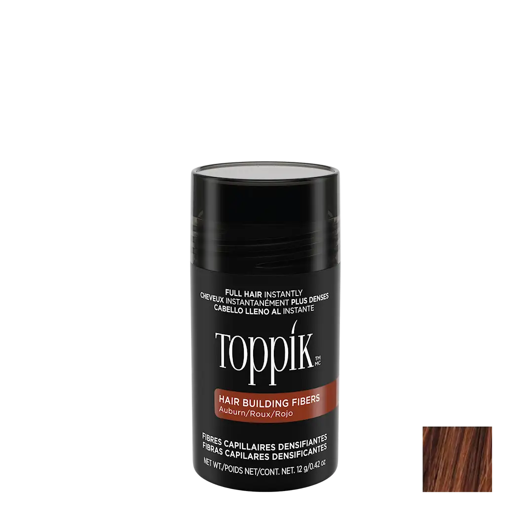 Toppik Hårfiber döljer tunnhårighet och håravfall. Organiskt keratin från naturligt ullhår fäster sig i det befintliga håret och gör att det ser mycket tjockare och tätare ut.