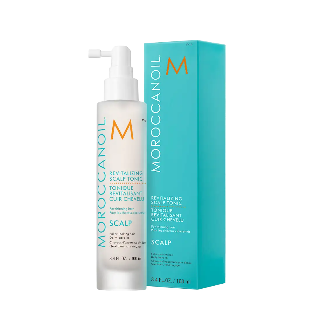 Moroccanoil Revitalizing Scalp Tonic är formulerad för att minska synligheten av håravfall för ett tjockare, tätare hår. Denna snabbabsorberande leave-in-behandling vitaliserar håret och piggar upp hårbotten, samtidigt som den även ger näring, lindrar obehag och ger en lugnande känsla. Hjälper till att minska håravfall och slitage samtidigt som den balanserar och återfuktar hårbotten för att skapa den idealiska grunden för friskt hår att frodas på. Berikad med söt mejram och japanska plommonextrakt samt arganolja, hjälper denna dagliga behandling till att stödja hår med ett tjockare utseende samtidigt som den näringar håret och hårbotten. Moroccanoil Scalp Collection har en uppfriskande ny doft, framtagen av naturliga oljor särskilt utvalda för hårbottens behov. En aromaterapeutisk blandning av lavendel, tea tree och bergamott väcker sinnena för en sensorisk, spa-liknande upplevelse • Synliga resultat över tid med daglig användning
