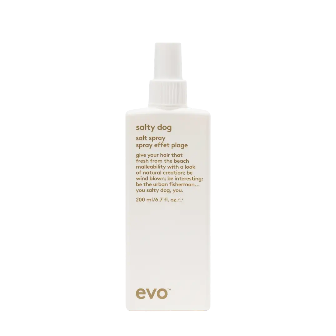 Salty Dog Salt Spray skapar strandiga, texturerade hårstilar utan stranden. Detta saltspray ger textur med en naturlig stadga och innehåller glycerin för att hålla håret återfuktat och förhindra uttorkning. Salty Dog kan enkelt kombineras med andra evo stylingprodukter för att skapa naturlig textur och separation. Salty Dog Salt Spray är en del av Style-familjen och erbjuder styling- och finishalternativ för alla hårtyper.